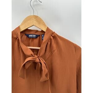 Lands' End Outfitters Blouse Women 2 Brown Tie Neck Long Sleeve Button Cuff