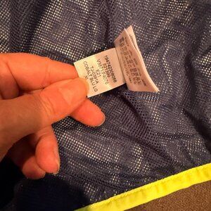 EUC - Only used a few times. Bight green edging and zipper, Velcro back pocket to pack the jacket into. Unused name lines. Hooded and Lightweight. Side pockets Size X-Large 14-16