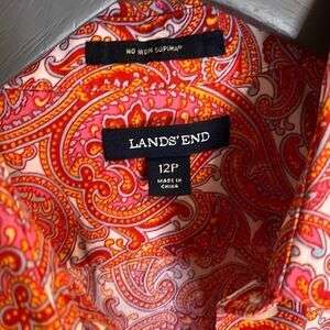 Lands End Paisley Button Down Shirt Size 12 P. Red/Orange