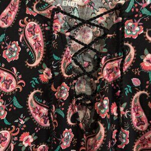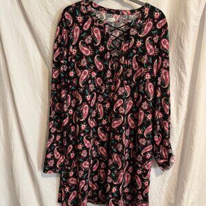 Land's End Paisley Dress - New, Never worn. Black, Pink, Green Paisley Pattern. Lace up neckline. Great for after the beach, casual night out, everyday wear, school and work.
