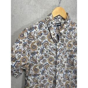 Lands End Paisley Print Short Sleeve Shirt Traditional Fit Mens Medium