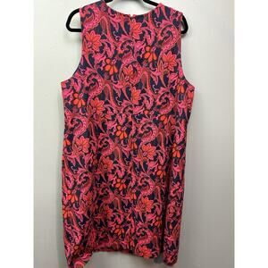 Lands' End Paisley Sleeveless Sheath Dress Womens Plus 22W Pink Blue Pockets