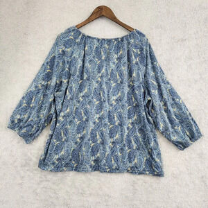 Land's End Paisley Womens 2X Blouse Elastic Cuffs Neckline Cotton Stretch 24CT