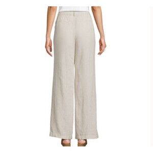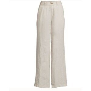 Lands End Pants 100% Linen 18 Off White Beige High waisted Wide Leg Pants New