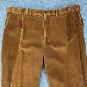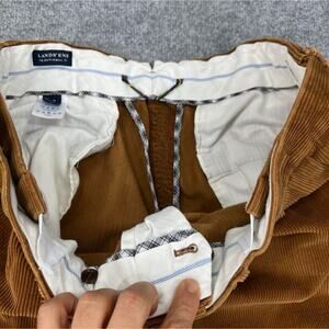 Lands End Pants Mens 38 Pecan Cotton Traditional Fit Corduroy Pleated Cuffed