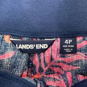 LANDS END PANTS WOMENS 4P PETITE NAVY FLORAL LINEN PULL ON POCKETS STRETCH WAIST