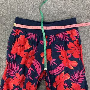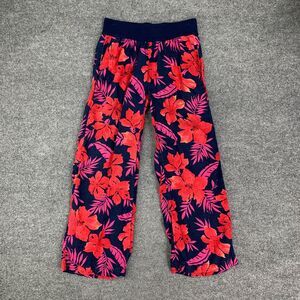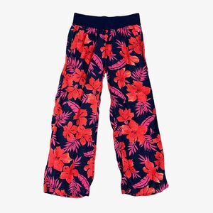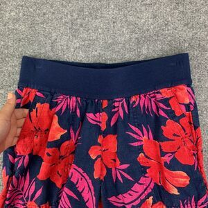 Lands End Pants Womens 4P Petite Navy Floral Linen Pull On Pockets Stretch Waist