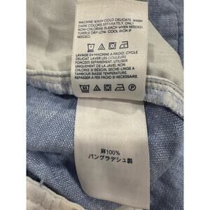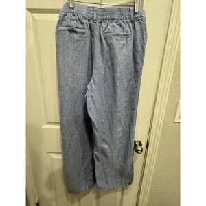 Lands End Pants Womens Size 14P Blue 100% Linen High Rise Wide Leg Coastal
