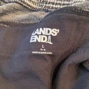 Lands End Pants Womens L Black Houndstooth Cargo Velour Straight Leg Streetwear
