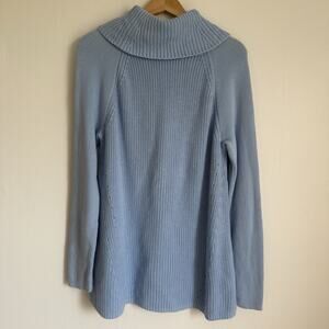 Lands’ End Pastel Blue Cotton Cowl Neck Sweater XL Longline Tunic Raglan Cozy