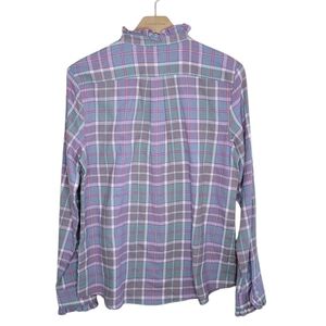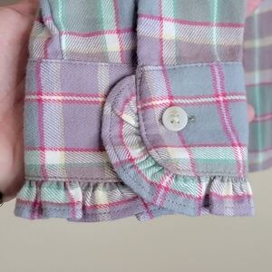 Lands' End | Pastel Purple Pink Green Plaid Flannel Shirt with Ruffle Details
