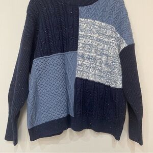 Lands’ End Patchwork Crew Neck Sweater Size Large