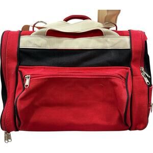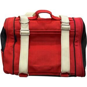 Lands' End Pet Carrier Dog Cat BACKPACK Tote Bowl Canvas Ivory Red VTG 15 X 11