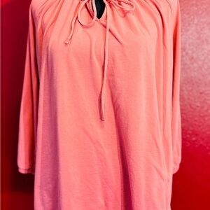 Lands' End Pink 3/4 Sleeve Tie Front Blouse, Size L