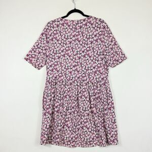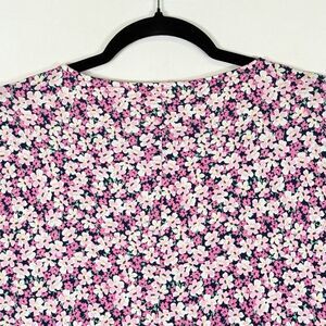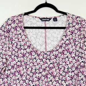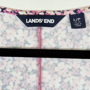 Lands' End Pink Floral Knit Short Sleeve Fit Flare Dress Womens Sz Large 14 16