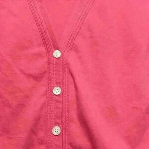 Women's Land's End Button-up Shirt Top or Cardigan Pink (Bust measures 20 inches pit to pit) Length measured from shoulder seam to hemline is approximately 25 inches. 100% Cotton Knit. Long sleeves, low v-neck Good Pre-owned Condition. No Flaws. Ships next day.