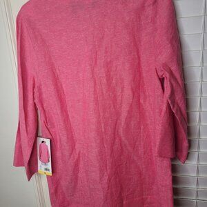 Lands End Pink Linen blend Tunic Top Split Neck 3/4 Sleeve S Beachcore Granny