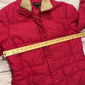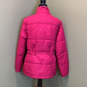 Vibrant pink puffer jacket. Cozy and stylish. Perfect for cold weather.
