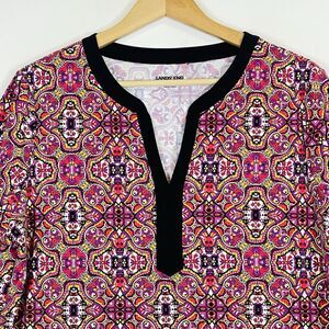 Lands' End Pink Purple Bright Mosaic Stretchy Slinky Dress Womens Large 14 16