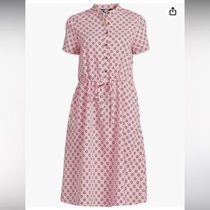 Lands' End Pink Wood Lily Medallion Tile Short Sleeve Button Front Mini Dress L