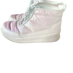 Step into style with these Lands' End boots, featuring a vibrant pink and white color scheme. The boots boast a chunky sole for a retro-inspired look, while the detailed stitching and panels add texture and structure. Perfect for adding a pop of color to any outfit.
