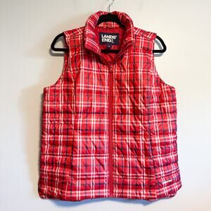 Lands’ End Plaid 600-Fill Down Classic Puffer Vest Red Check NWT Size M