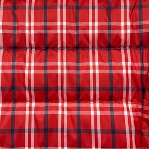 Land's End Plaid Boxy Puffer Jacket Red White Blue Mock Neck Size Small