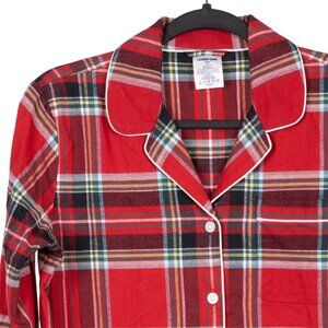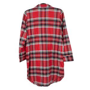Lands End Plaid Button Up Nightshirt XS 2 4 Womens Petite Red Cotton Long Sleeve