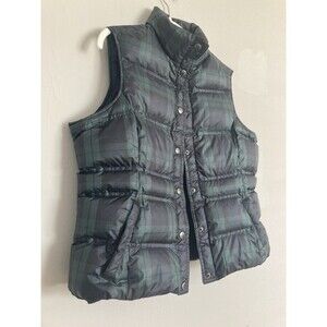 Lands’ End Plaid Down Puffer Vest MEDIUM Black Watch Women’s Navy Green