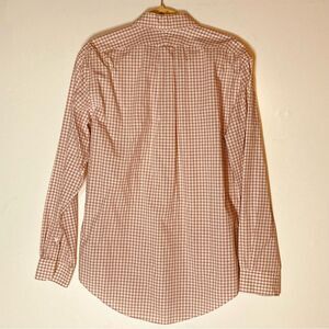 Very nice and lightweight men’s Lands End plaid button up. White with red (and blue) throughout, this is a size 16.5/35 in a tailored fit.