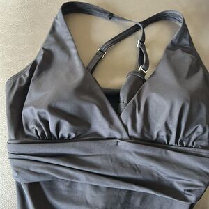 Land 's End Plunge X back convertible straps power mesh lined high leg 1 piece L