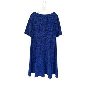 Land's End Plus Blue Black Work Velvet Brocade Ornate Short Sleeve Dress Size 1X