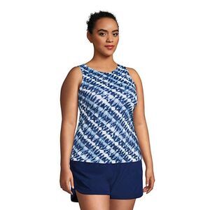 New Land’s End Plus Modest high neck tankini navy white bias tie dye Various sizes below.