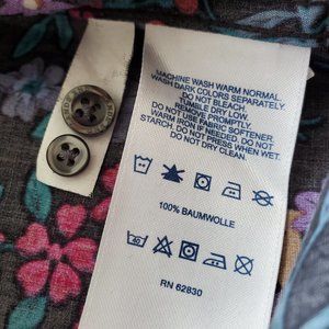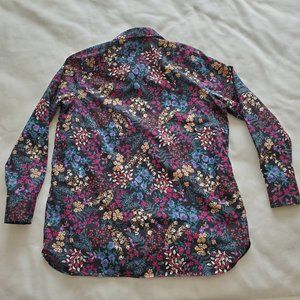 Lands' End Plus Size 16T Tall No Iron Floral Cotton Long Sleeve Shirt Black Blue Pink Green is in good pre-owned condition.