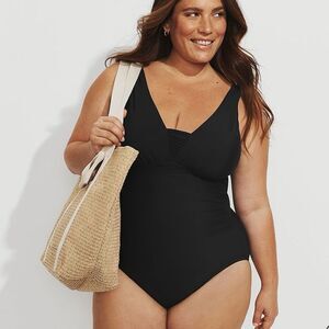 Lands' End Plus Size SlenderSuit Grecian Tummy Control One Piece Swimsuit size 20W Black
