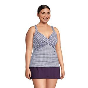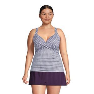 Land’s End Plus Standard Vneck wrap tankini top underwire Blackberry Geo Mix Var