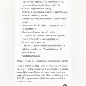 Introducing the Land's End High Neck Tankini – a fusion of fashion and function for your ultimate swimwear experience. Crafted with meticulous attention to detail, this tankini combines a chic high neckline with a comfortable and supportive design. The high neck not only adds a touch of sophistication but also provides enhanced sun protection for your delicate skin. Whether you're lounging by the pool or taking a dip in the ocean, this tankini offers the perfect blend of coverage and style. Made with premium materials, it ensures both a secure fit and lasting quality, so you can enjoy countless beach days in confidence and comfort. Elevate your swimwear collection with the Land's End High Neck Tankini.