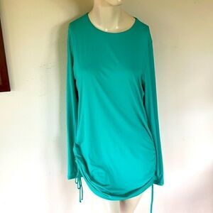 Beautiful new without tags Land’s End ruched long cover up with extremely beautiful details, thumb holes and interesting under arm detail, sizes below.