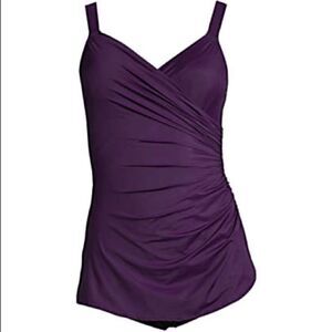 Land’s End Plus Standard Size Slender Vneck skirted onepiece Blackberry Various