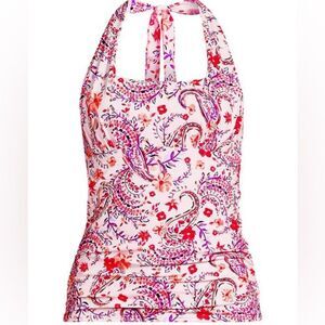 Land’s End Plus size soft cup halter tankini top Wood Lily Floral Paisley 14