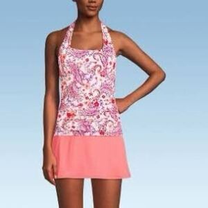 New Land’s End Plus size soft cup adjustable halter tankini Wood Lily Floral Paisley size 14