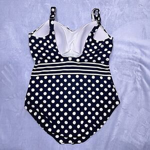 Lands End Polka Dot Striped One Piece Swimsuit