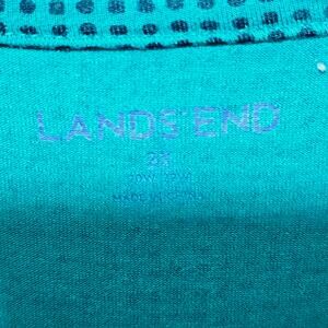 Lands End Polka-dot 3/4 Sleeve Knitted Top Women's Size 2X Green Casual Comfy