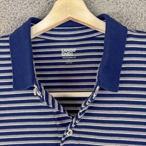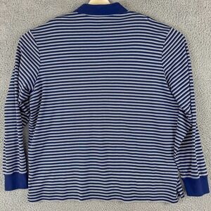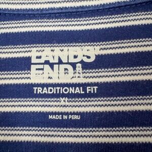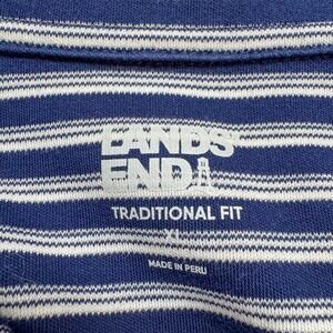 Lands End Polo Shirt Mens XL Blue White Stripe Long Sleeve Traditional Fit