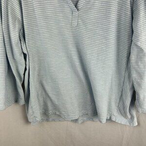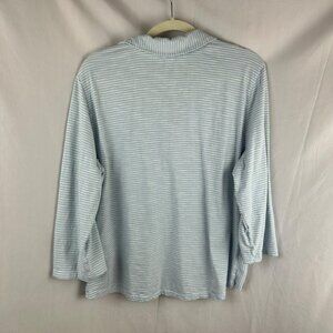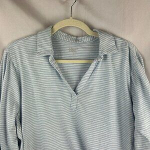 Lands' End Polo Shirt Women XL Blue Stripe Johnny Collar 3/4 Sleeves 100% Cotton