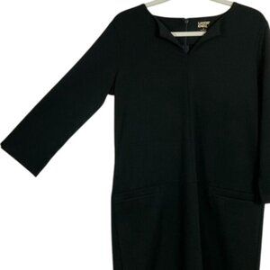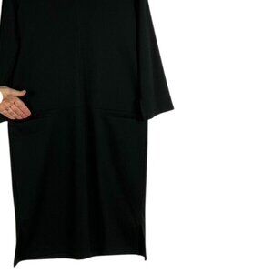 Lands' End Black Ponte Knit Notch Neck Dress with front Pockets