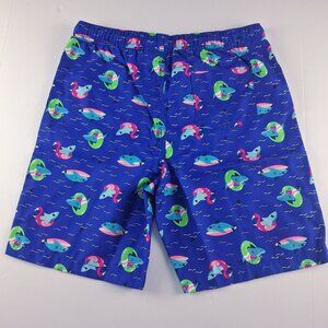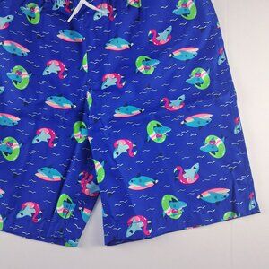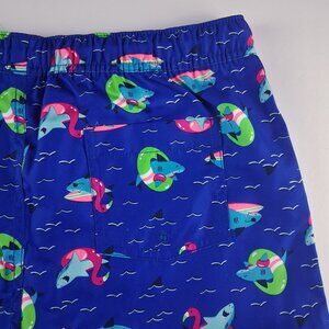 Lands' End Printed Swim Trunks Boys Size XL Husky Electric Blue Funny Sharks