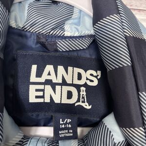 Land's End Puffer Blue Plaid Down Feather Insulated Full Zip Vest L/P 14/16