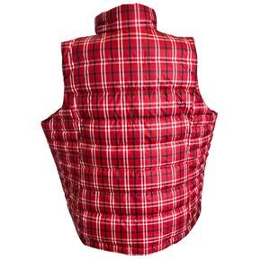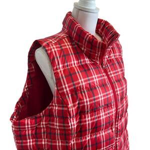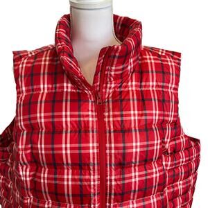 Lands' End Puffer Down Vest Women's Size 2X Red Blue Plaid Plus Feathers Warm