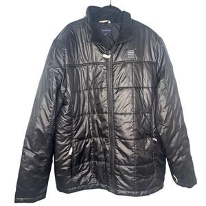 Lands' End Puffer Jacket Full Zip Men's Size Large Tall LT Black Warm Coat Light